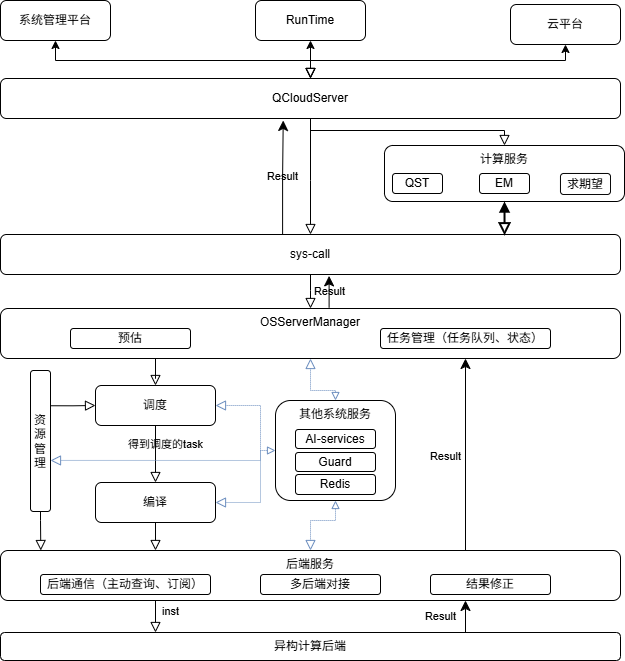 Task Preprocessing and Routing: For specialized tasks (such as QST, Expectation Estimation, EM Computation), QCloudServer forwards them to dedicated computing services for preprocessing before calling the Pilot kernel through the system API.