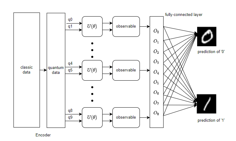 This example uses VQNet to implement the algorithm in the thesis: Circuit-centric quantum classifiers . This example is used to determine whether a binary number is odd or even. By encoding the binary number onto the qubit and optimizing the variable parameters in the circuit, the z-direction observation of the circuit can indicate whether the input is odd or even.